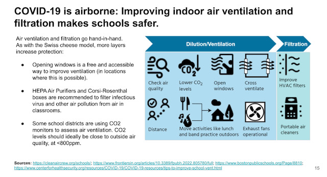 Goal: To promote best practices for COVID-19 mitigation, including cleaner air, vaccinations, testing and masking.